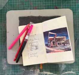 Au retour, je compose des architectures imaginaires reprenant ces codes : des néons, la nuit, la lumière, l’architecture… une invitation vers le voyage.